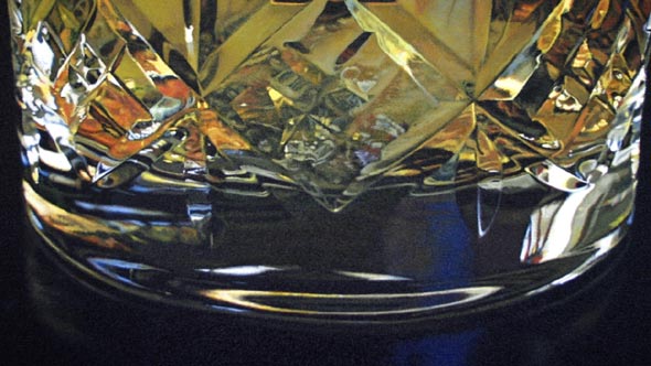 An oldie I found when going through archives. An oil painting on canvas which portrays a crystal whisky glass, with Jameson on ice, from 2006/7. This is one of the last of a series of glass studies from around the time when I was exploring the characteristics of glass and other liquid, in preparation for future work. It was during this time that I also attended workshops in glass torchwork, and fusing and slumping, giving me a better ‘feel’ for a material that has always greatly fascinated me. I clearly remember thoroughly enjoying painting this particular work. The painting belongs to a private collector in the United Kingdom.